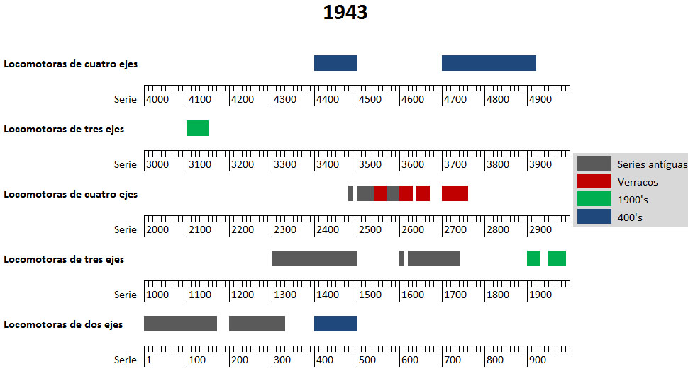 • Las nuevas locomotoras que se adquiriesen de cuatro ejes acoplados se encuadrarían en el millar 4000.