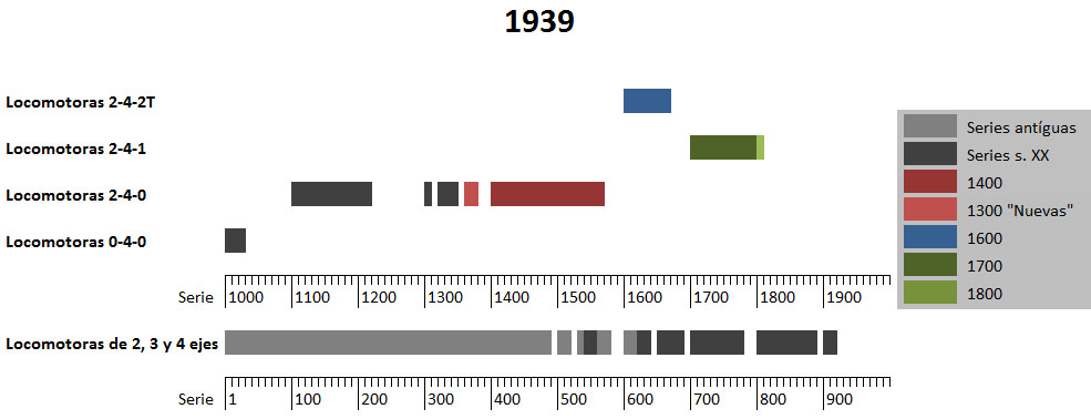 (1) En febrero de 1941 se constituyó RENFE, no obstante el material de la nueva compañía continuó manteniendo las antiguas matrículas sustituyendo las siglas de la compañía anterior por RENFE (o RN en el caso de vagones). No fue hasta 1943 que la nueva empresa estableció una forma unificada de matricular las unidades de su parque y procedió a sustituir las matrículas del material por las nuevas numeraciones.