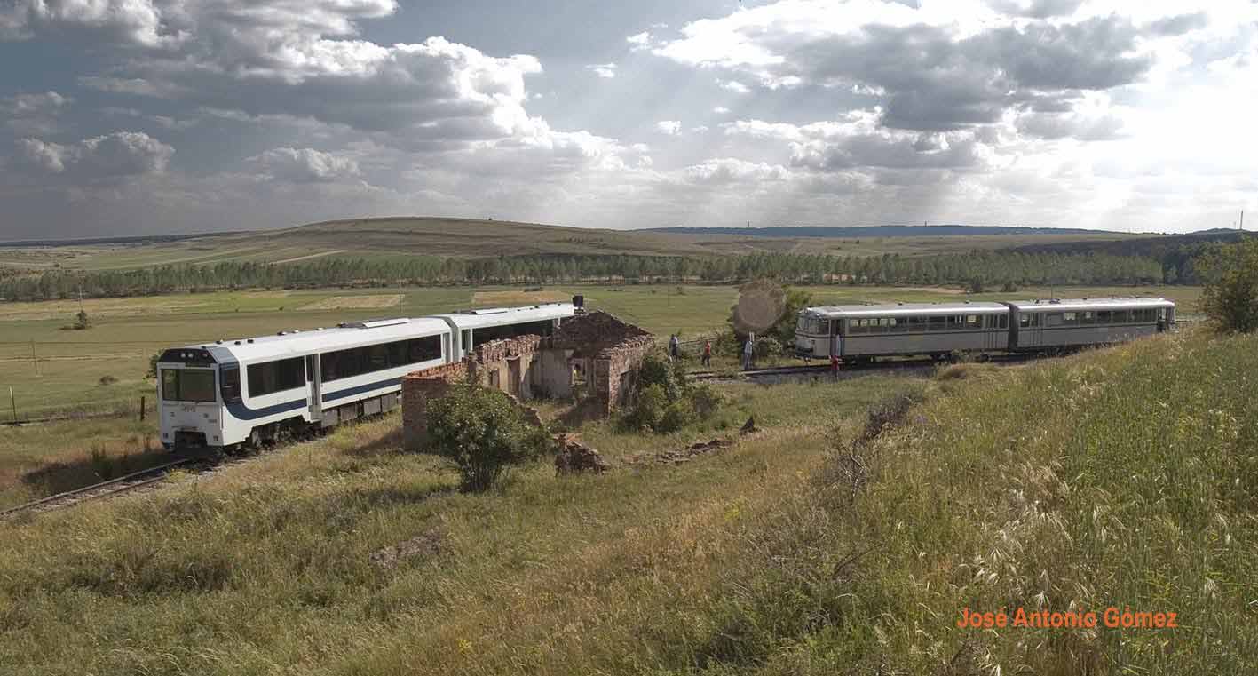 Cruce de Cillamayor con un Apolo y el Ferrobús de Barruelo