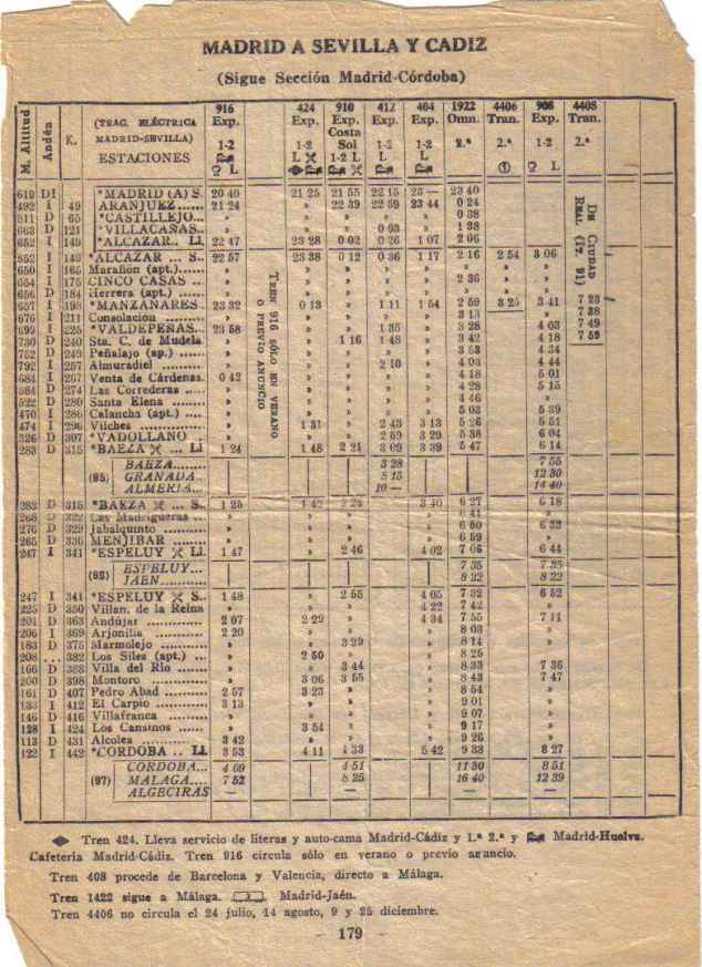 Mi consulta tiene como motivo una petición, y es si alguien podría proporcionarme, o decirme dónde encontrar, horarios históricos de la linea Alcázar de San Juan-Cádiz (para ser más concreto, aquellos en los que aparezca Valdepeñas, mi ciudad). He buscado por el foro, pero no he encontrado nada (puede ser que sea demasiado torpe :oops: ).