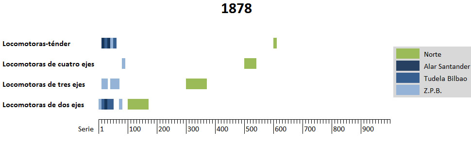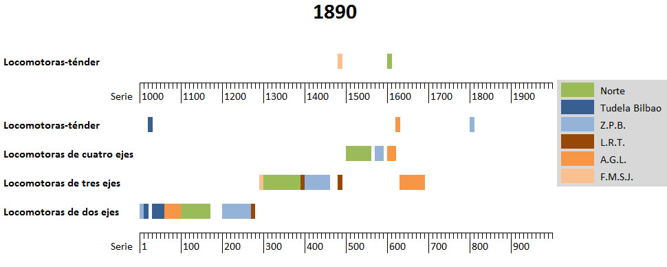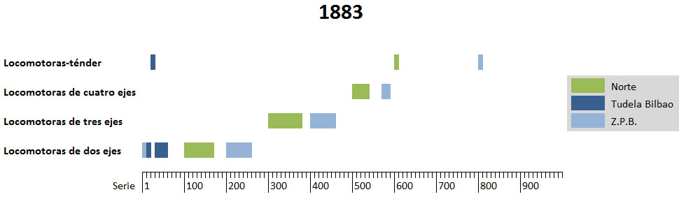 Por todo ello, entre 1880 y 1883, y aprovechando los primeros desguaces de locomotoras(1), la compañía se planteó rematricular todas las locomotoras absorbidas del Z.P.B., dejando la franja 1-99 para las locomotoras de Tudela Bilbao, todas ellas de dos ruedas motrices (algunas de ellas locomotoras-ténder).