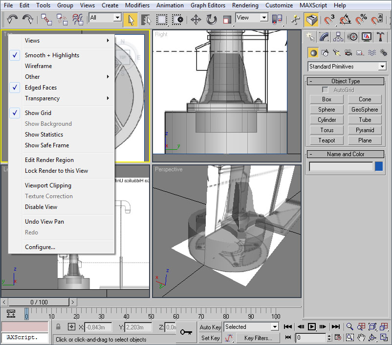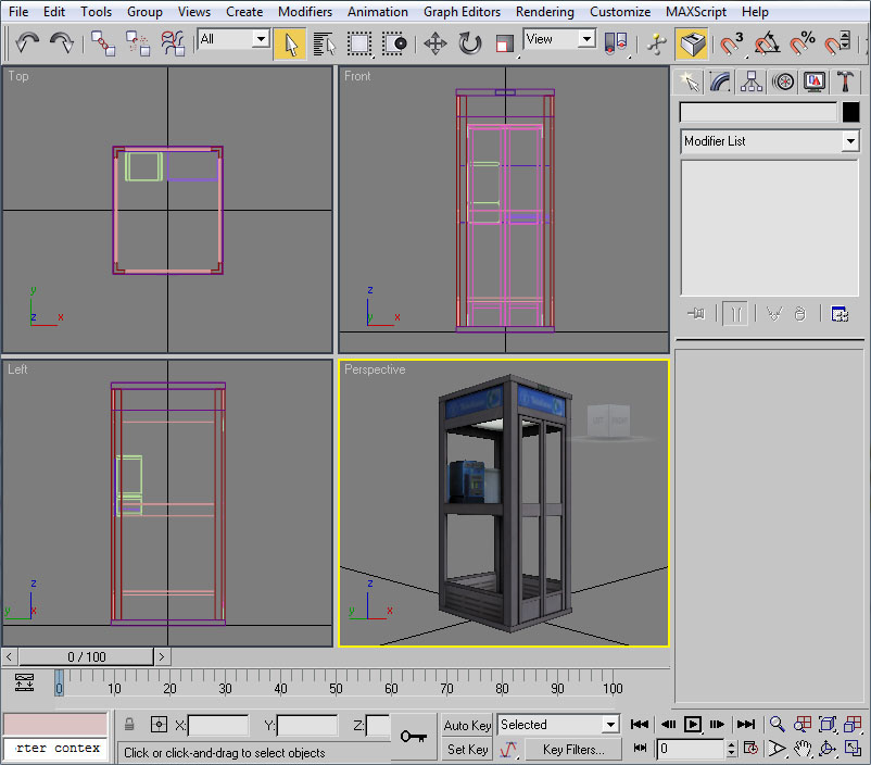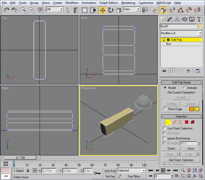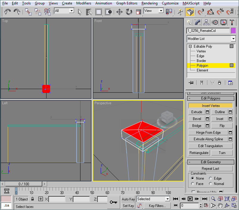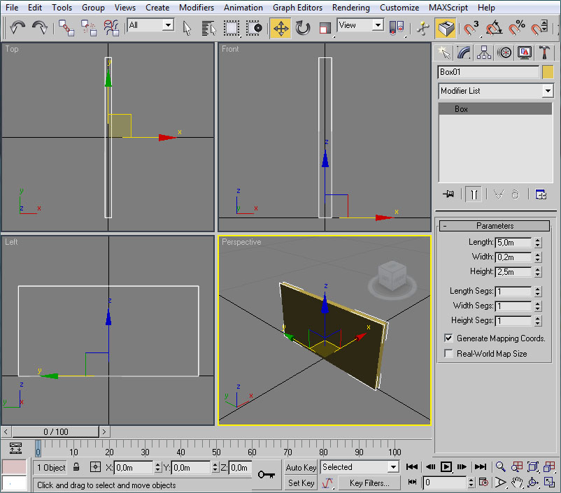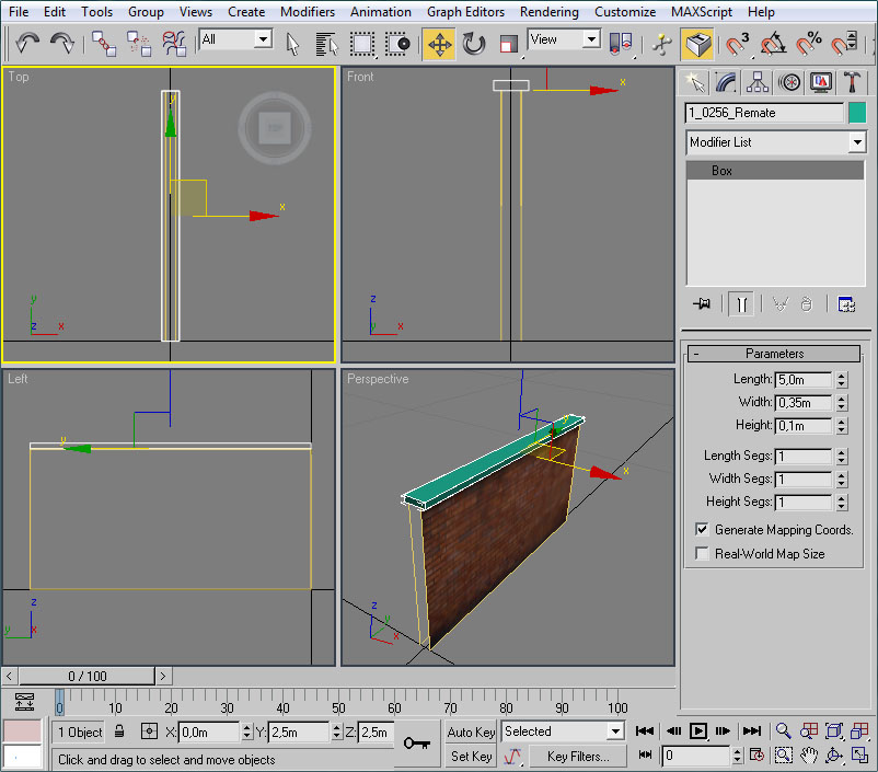 - Una vez abierto el editor UVW pincharemos en un viewport (el de perspectiva será ideal) sobre un lateral del muro.