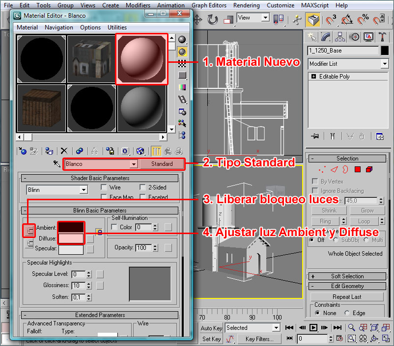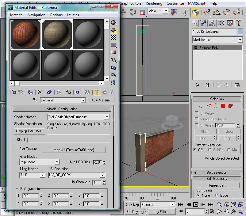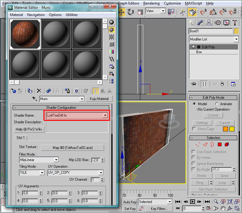 Tan sólo resta mapear aquellas texturas que deseemos para nuestro objeto. En el presente caso he creado la hoja de texturas TxMuroTut02, que antes he mostrado.