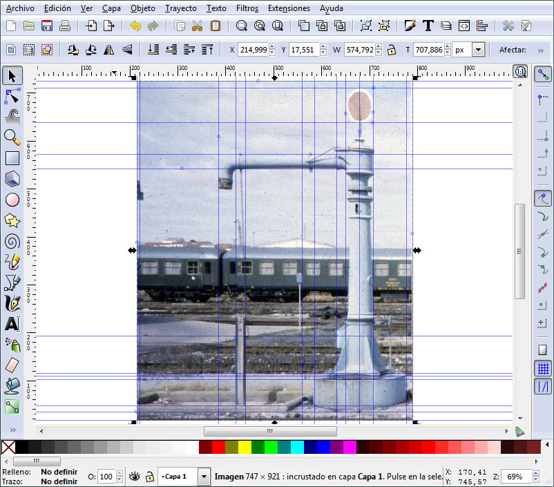 - Para enrasarlo respecto al suelo. En realidad quien debe estar enrasado con el suelo es el pivote del objeto, pudiendo estar el objeto por encima (una catenaria por ejemplo) o por debajo (en el caso que quisiéramos alargar nuestro muro bajo tierra y así, en terrenos irregulares, evitar que el muro "levite" en algún tramo).