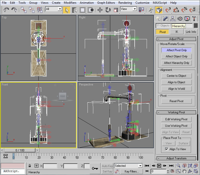 - Pulsamos el botón Affect Pivot Only para asegurarnos que desplazaremos únicamente el pivote del objeto, dejando éste tal como está.