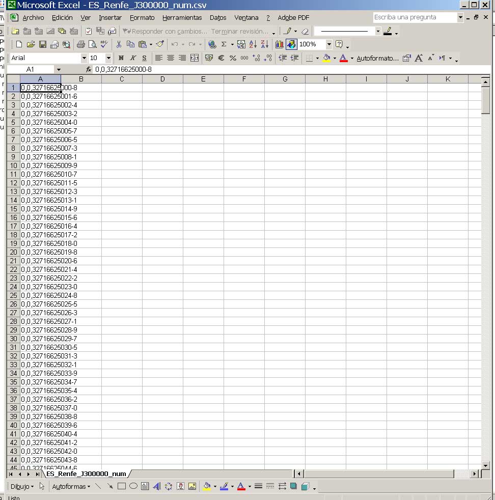 - En el blueprint del vagón incluiyo en Numbering List el fichero CSV, cuya estructura se ve en la otra captura, que es 0,0,y los trece dígitos (que incluyen un guion en este caso pero podrían incluir letras). Lo que se incluya puede ser números, letras o lo que sea que se quiera que luego aparezca asociado a una textura.