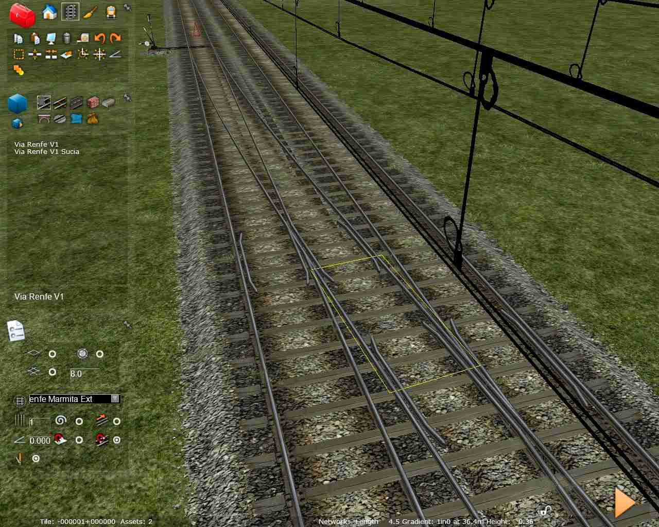 Abro este hilo para comentaros un pequeño descubrimiento con el que me topé por casualidad. Como ya hemos hablado anteriormente sobre las vías la entrevía 'normal' de Adif es de 4 metros, siempre que sea en líneas para velocidades <=160, pero el RW digamos que es un poco caprichoso con entrevías estrechas, produciendo errores en los corazones y al realizar desvíos dobles. Pues bien, trasteando con una ruta de pruebas donde hago todo tipo de combinaciones de vías descubrí por casualidad que usando la herramienta de pegar la vía al terreno no sólo no aparece el error en los corazones, sino que no pone ninguna pega al crear aparatos de vía unos detrás de otros, cosa que sin usar esta herramienta no se puede conseguir si no es con entrevías superiores. No le encuentro la lógica a esto pero funciona, que es lo importante. En las vías de Camber con la entrevía normalizada a 4 metros se puede hacer de todo y sin problema alguno usando esta herramienta, sin embargo las de Pere sí que dan algún problema en desvíos dobles (será cuestión de modificar algún valor). La forma de proceder sería plantar la vía general, pegar el terreno a la vía y para terminar plantar el desvío con la herramienta pegar al terreno (al estar ya pegado a la vía la que pongamos seguirá el mismo patrón que las generales) y listo.