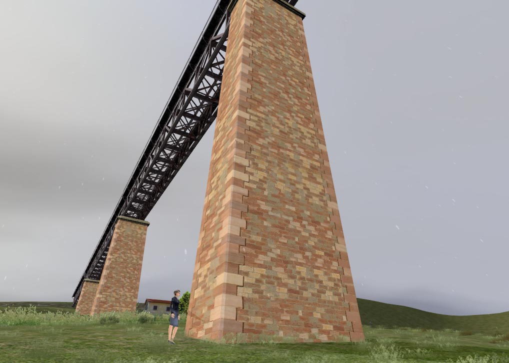Gracias a la configuración con LODs es posible unir secciones del puente para desarrollar largos viaductos sin carga aparente en el simulador.
