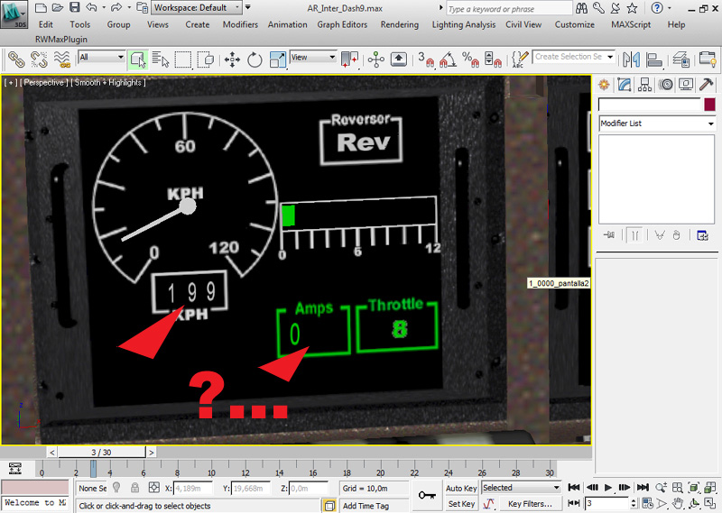 El problema es que hice los números del acelerador con polígonos y su textura y funcionan perfectamente, pero cuando repito el proceso para los amperes o los del velocímetro no se mueven.