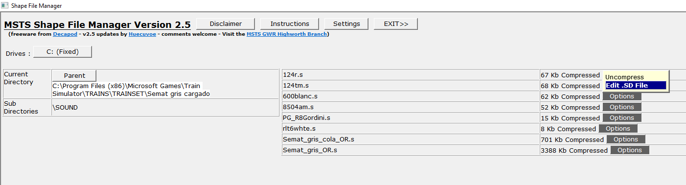 Mr TER, yo tengo, en la misma carpeta del vagón, los .s, .sd y ACE, todos juntos, y me funciona perfectamente. Echa un vistazo al WAG, por si hay algún error. Yo tengo los coches puestos así.