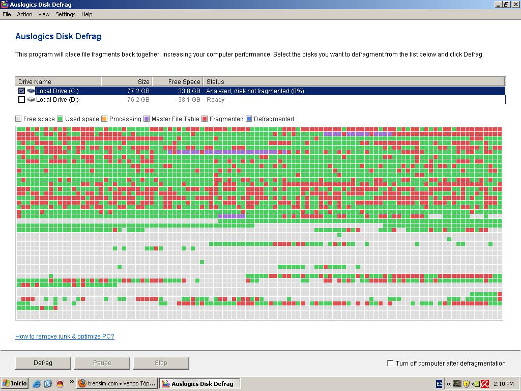 abrahamx escribió:Hablando de desfragmetacion el desfragmentador que viene de windows xp si ese el que usas tu :D es sumamente malo. puedes usar otros pogramas opcionales como el VoptXP es para mi el mejor programa de desfragmentador que existe. claro tambien tienes otras opciones. puedes usar el trial de VoptXP que no tiene ninguna limitacion :D