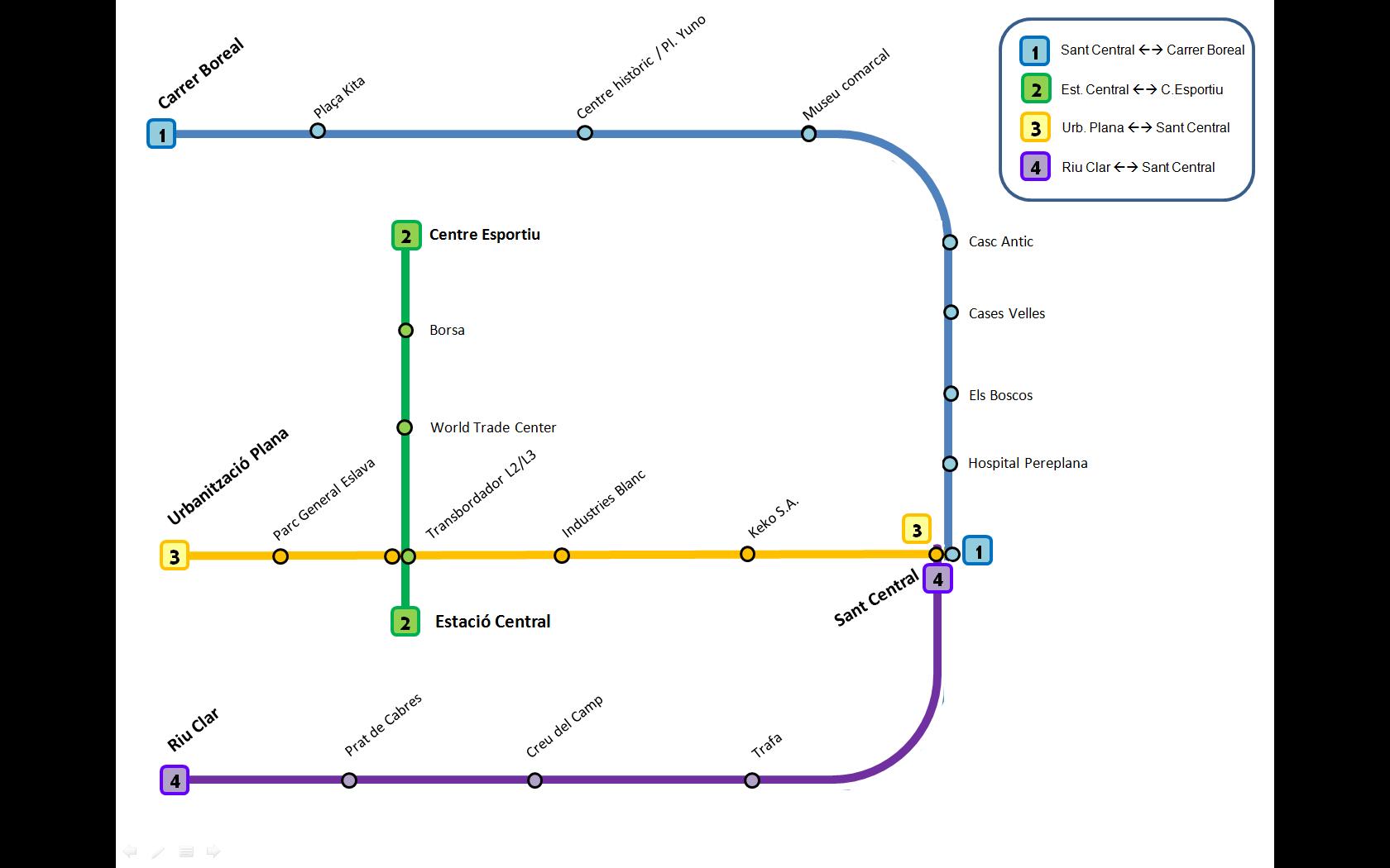 - La L4, a partir de Sant Central, sigue hasta Carrer Boreal siguiendo el recorrido de la L1