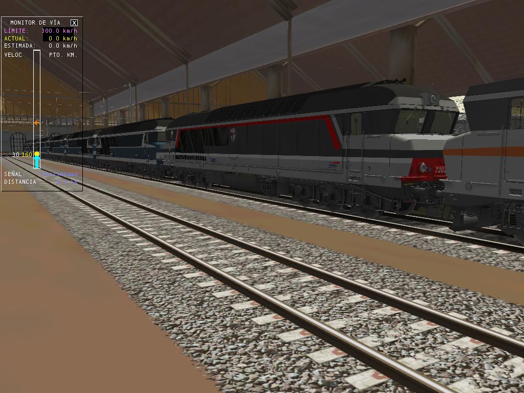 Aquí tenemos las capturas. El MsTS no se ha colgado, iba algo lentillo, pero no se apreciaba demasiado, aunque el viaje no ha sido lo suficiente largo para comprobarlo, pero en mi ordenador está clara la situación. Quizá en una ruta más cargada... Lo que he hecho es poner todas las locomotoras de cada serie de este desarrollador: las BB-15000, las BB-7200 y las CC-72000, una de cada numeración que había, con la BB-15001 en cabeza.