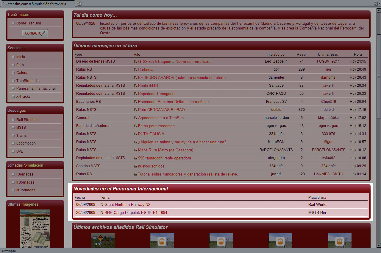Se ha modificado la Portada de Trensim para incluir un nuevo apartado que refleje las novedades en la sección de Panorama Internacional: