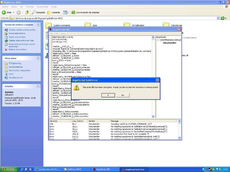 vipolo escribió:No hay nada que hacer; he descargado y he instalado y el icono que de crea en el escritorio es de color rojo. Lo ejecuto me sale el error-inicio railworks seleciono ruta y un escenario y no se inmuta sigue en rd. Me has comentado que a tí no te funciona con el MTS haber si es por eso que a mí si me funciona y tenga quitar algo o no. Se habló en este foro de cambiar una línea con worpad de un archivo no sé que pensar ya a lo mejor es que estoy demasiado liado.