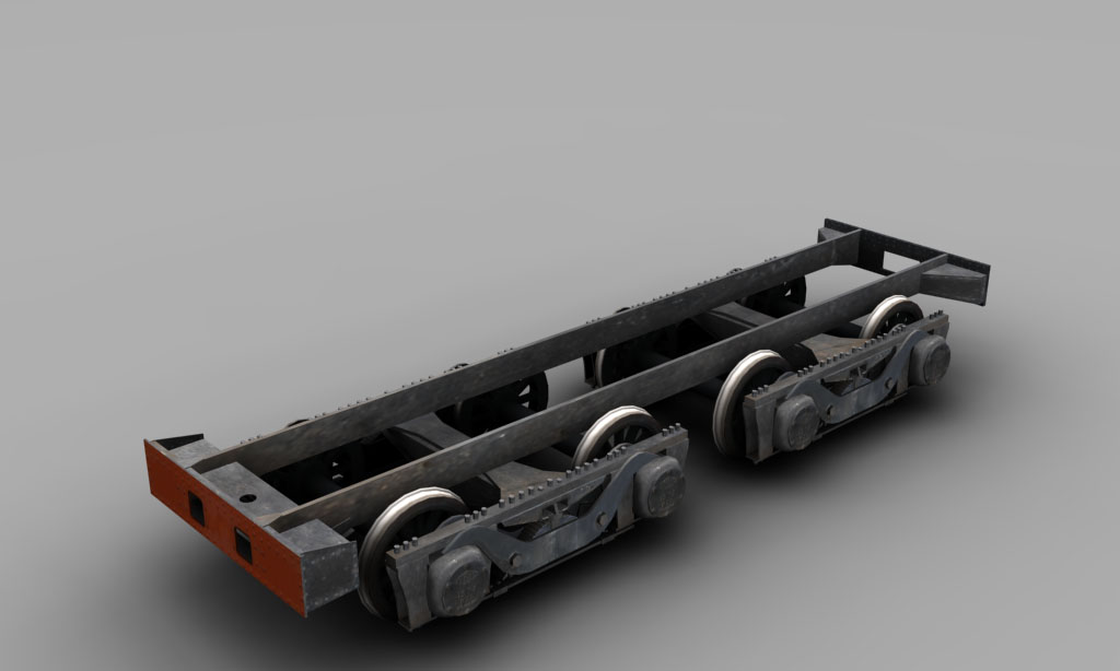 El maravilloso procedimiento de copiar y pegar nos permite obtener con ningún esfuerzo el segundo bogie del ténder, a los cuales bastará con añadir algunas vigas y toperas: