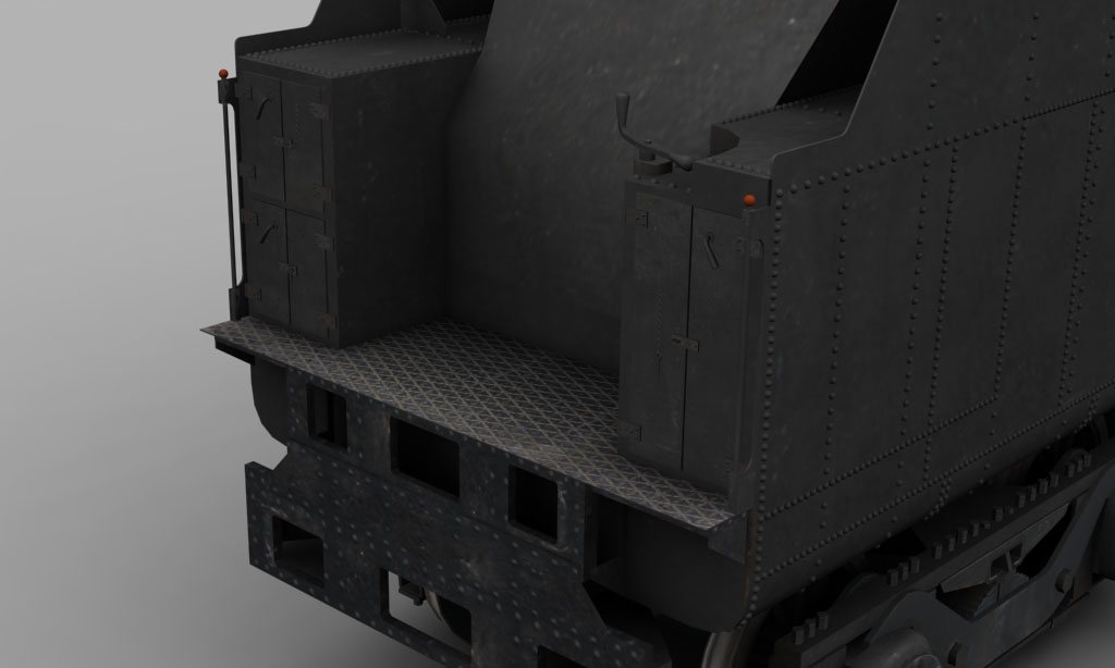 Bastará añadir una tolva sobre la carbonera, para ampliar la capacidad de combustible, y las aletas que protegen dicho elemento: