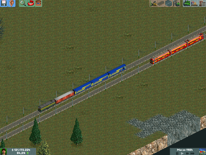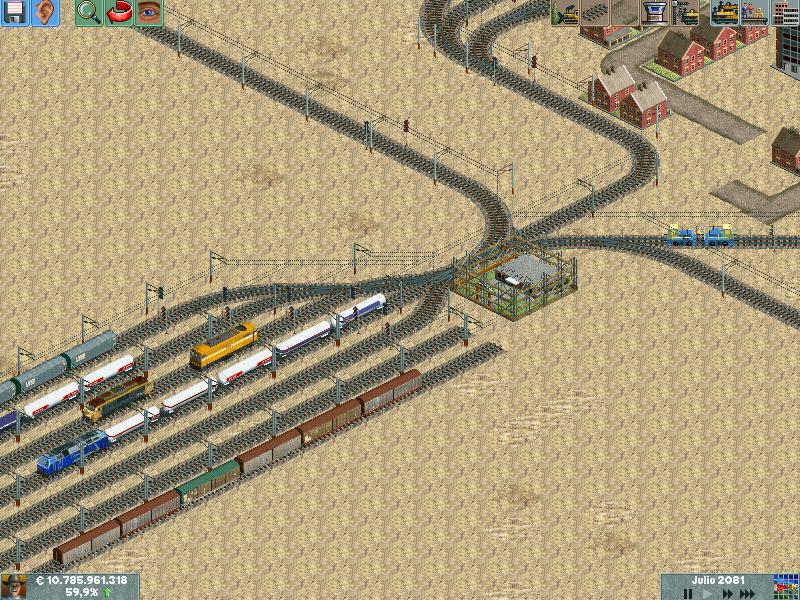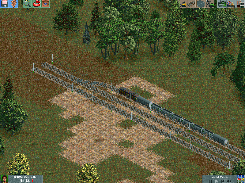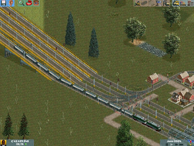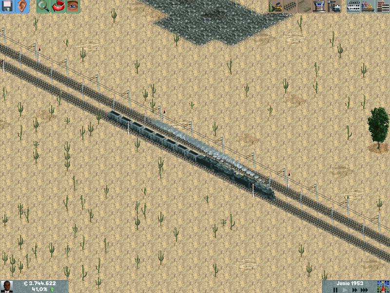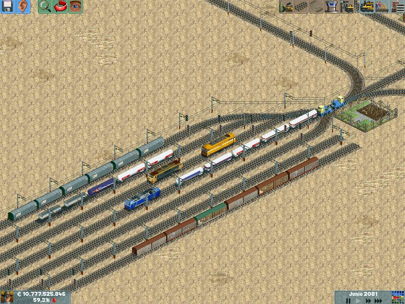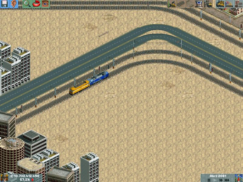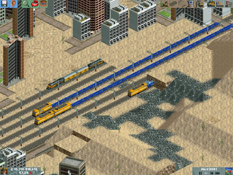 Os explico, me he creado un mapa totalmente llano, con muchas industrias. Para ver hasta donde podría llegar y a cuantos trenes podría hacer jaja. Lo empece en el año 1995 justo, con ciudades pequeñas apenas de 500 habitantes. Ahorra llevan algunas mas de 60.000 habitantes, y lógicamente las estoy encerrando para que no crezcan porque madre mía. Llevo unos 130 trenes, 14 aviones y unos 20 tranvías.