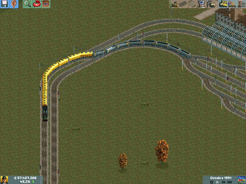 En mis redes procuro separar los trenes por velocidad, ya sea pasajeros o mercancías. Después de muuuuchas horas he conseguido dominar la IA del juego y rara es la vez que algún elemento se me despista (generalmente en obras...)--truco: hacer todo lo que se pueda en ro-ro!. Dejo unas poquitas fotos