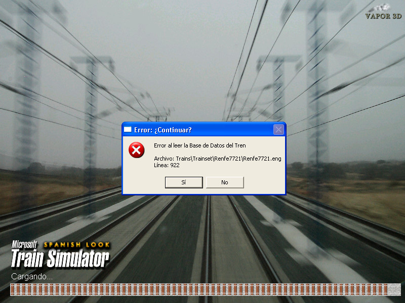 Habia dos errores mas y se corrigieron , pero no carga en convoi y ahora tampoco en el simúlador , al iniciar MSTS , aparece esto.